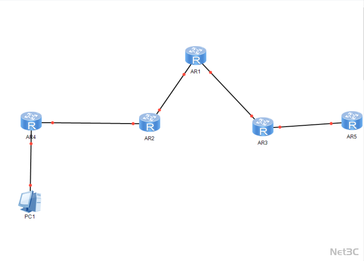 分支链路 1:AR2 与 AR4 串联,AR4 下挂终端 PC1,形成左侧接入链路。