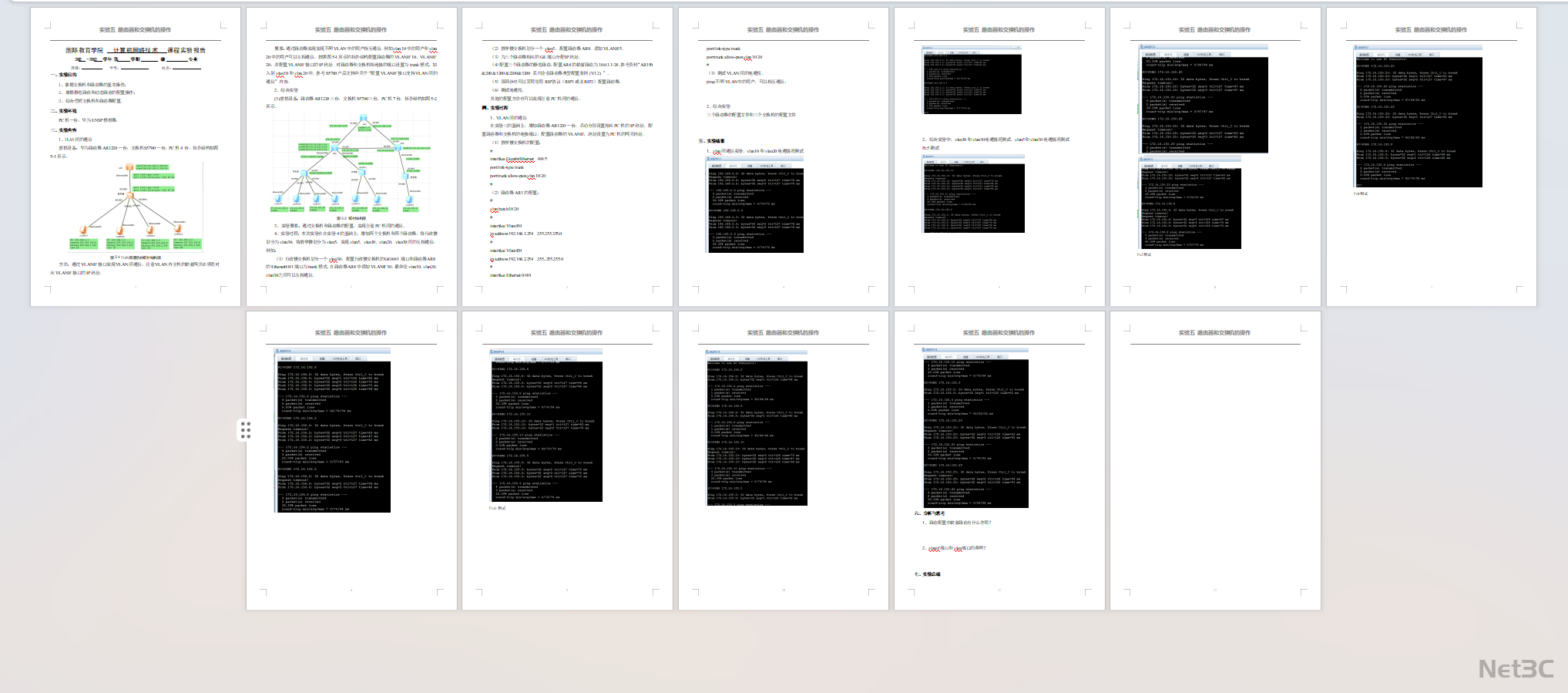 划分 VLAN10、20、30、50 等多个网段,为不同部门终端提供隔离的网络环境。